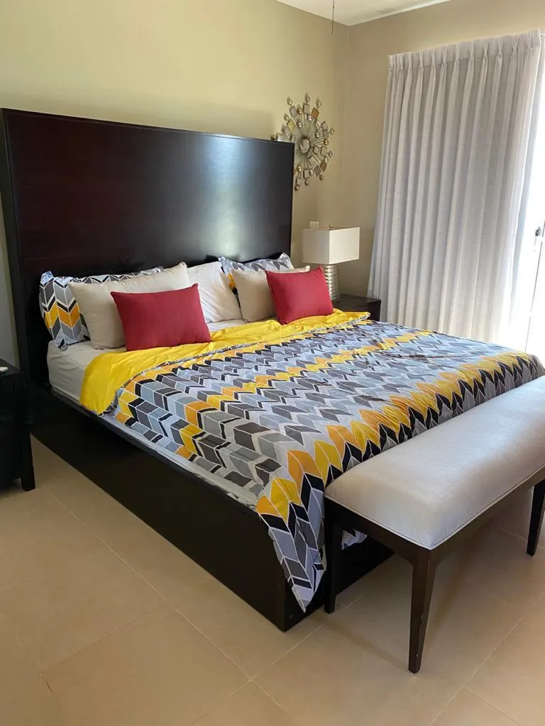 1 habitación principal con cama king, walk-in closet, baño doble, balcón incluido.